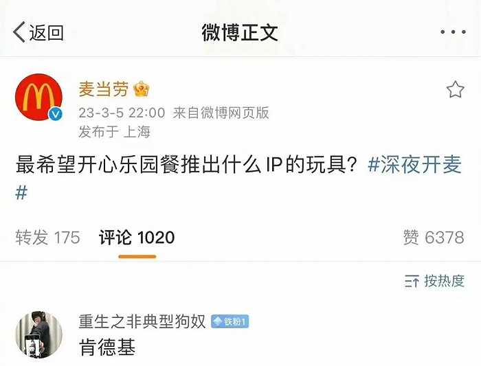 紧接着,在去年12月末,麦当劳官方微博运营连续三周的“狂热祈祷式发言”,在评论区成功集结了大批自称为麦门信徒的到来,开始了麦门教内部的小范围狂欢。