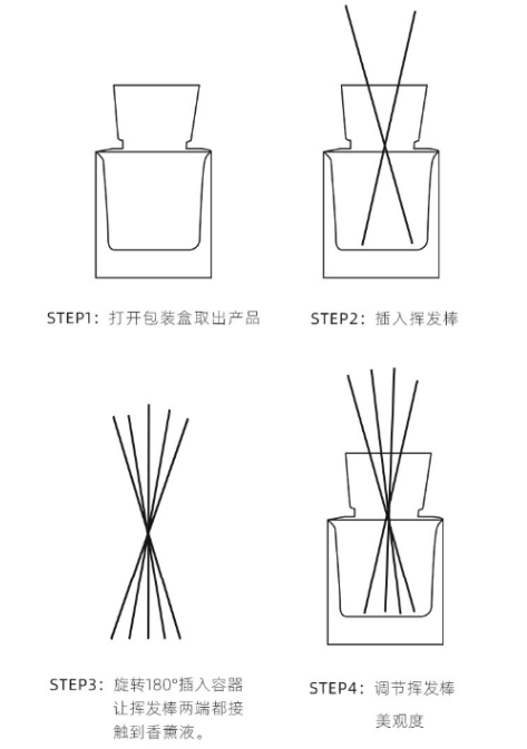 这款香薰配置了200毫升的香薰瓶,搭配六根藤条,使用起来方便又简单: