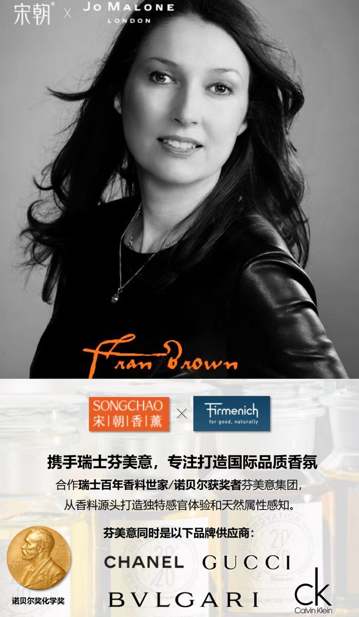 FRAN BROWN女士作为祖马龙前首席调香师,以东方文化为灵感,携手宋朝香薰共同打造国际“东方香味”。