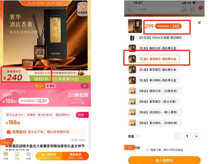 宋朝酒店香无火香薰,原价240元,粉丝福利价59元/瓶。