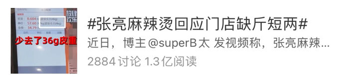 近日,作为麻辣烫巨头之一,拥有6000家店铺的张亮麻辣烫被曝门店缺斤短两,而“张亮麻辣烫回应门店缺斤短两”话题一度登上热搜,话题阅读数达1.3亿。
