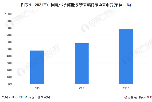 注:中国电化学储能产业市场集中度以中国电化学储能系统集成商的市场集中度为统计口径。