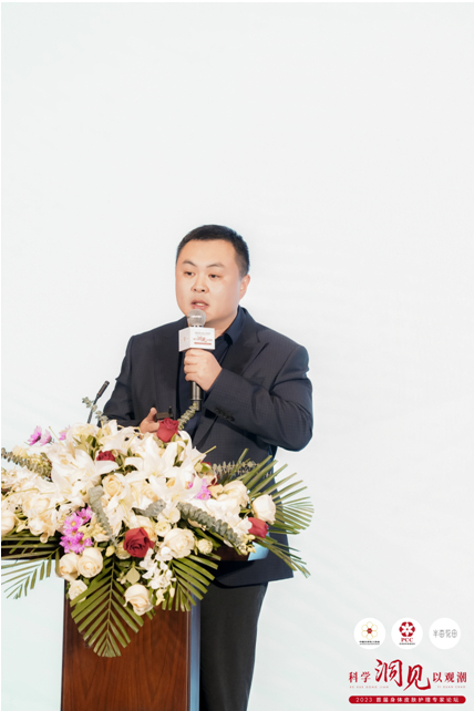 山东花物堂生物科技有限公司研发总监张晔翔就《身体护理的科研成果》,展示了半亩花田基于用户肌肤问题及需求,自主研发的RIVETOR®屏障修护技术、FERMENCALM双菌发酵技术、花悦舒皮肤舒缓技术等技术成果及产品开发应用。
