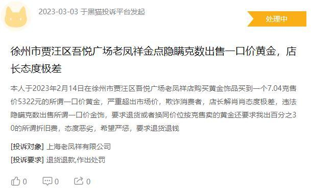 很多消费者反映,老凤祥出售的“一口价”黄金明显高于市场价,但销售人员有意向消费者隐瞒该事实,造成消费者财产损失且事后维权困难。
