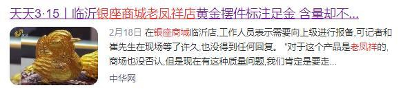 此外,就在今年2月中旬,还有媒体报道称,某消费者购买的印有老凤祥和足金标记的黄金摆件,经鉴定含金量为977.1‰,达不到足金标准(含金量达到990‰以上)。