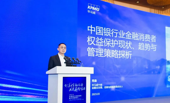 2023年3月14日,中国银保传媒于北京举办了2023中国银行业保险业服务创新峰会。围绕“创新金融服务 共建美好生活”主题,与会嘉宾就当前银行业保险业服务创新经验和消费者权益保护工作相关热点问题展开深入探讨。同时在峰会上,中国银保传媒联合毕马威正式发布了《中国银行业消费者权益保护现状、趋势与管理策略探析》。毕马威中国金融业治理、合规与风险咨询服务合伙人常淼从咨询公司的角度分享了银行业金融消费者权益保护体系建设的总体框架,并从五个维度提出提升金融消费者权益保护的建议。