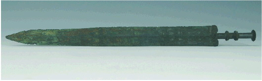 考古人员研究发现,吴越地区出土的青铜剑,与同时期中原地区的剑有明显区别:“剑茎实芯,有的饰有花纹,茎端有较大的圆首,剑身中脊隆起,前锋尖细,两侧刃已呈现两度弧曲的雏形。这种侧刃的弧曲,是吴越青铜剑最主要的特征之一。”