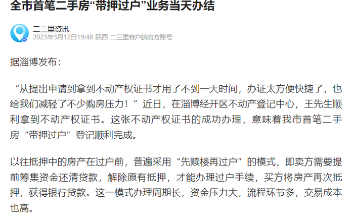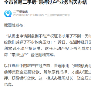 北风注意到,今年二月底到三月初,才在各个地方媒体的宣传中,纷纷出现“本市首笔带押过户房产交易达成”的新闻。