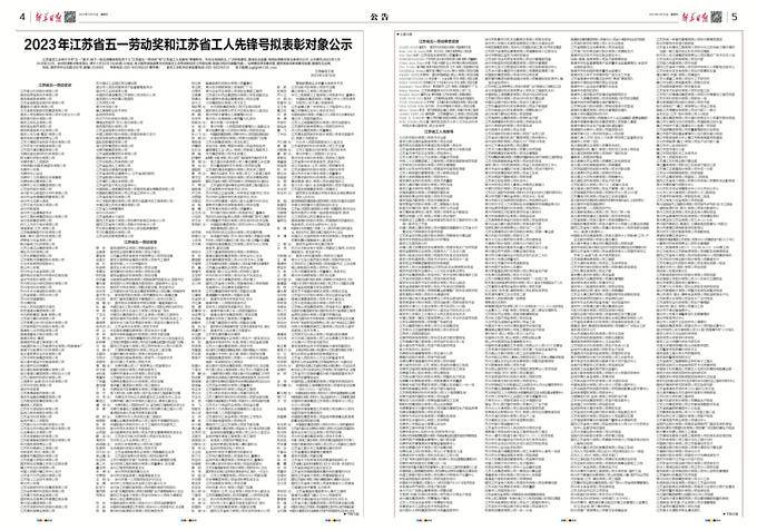 2023年江苏省五一劳动奖和江苏省工人先锋号拟表彰对象公示