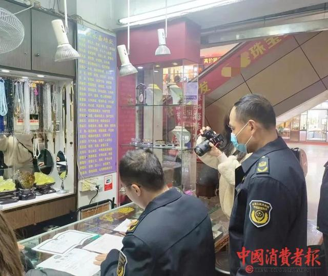 在特艺城3楼的君豪珠宝店,执法人员询问有没有“今日金价”价签、首饰工费价签,店员均表示没有。执法人员对商家现场普法,指出按克重计费的黄金首饰必须明确标注金价、工费等重要价格信息,按件计费的首饰则须标注整件首饰的价格。