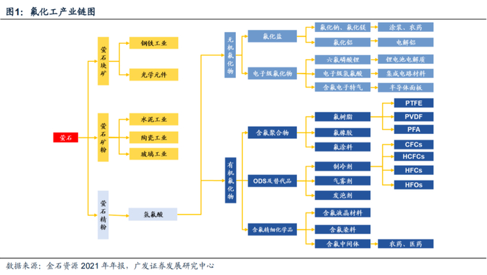 (一)氟化工产业链涉及面广且支链多,下游应用广泛