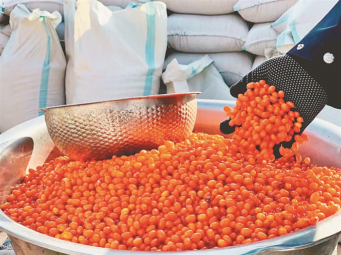 段国庆说:“我们严格制定寒地冬果沙棘精细化管理实施方案,做好沙棘谷树木长势情况调查,在实际操作上助力沙棘的通风、采光,剪枝方面去弱留强。加强沙棘树的营养及病虫害防治,使沙棘谷中傲然挺立的沙棘每株产量增长50%。同时加强日常管理,不定期不定时进行抽查、巡护,在进山入口进行严格把关,筑牢安全屏障。”