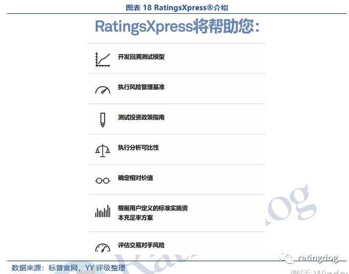 RatingsXpress®为信用评级数据库,用户可以单独采购数据源,然后自行加工,构建风控模型或者是投资策略。