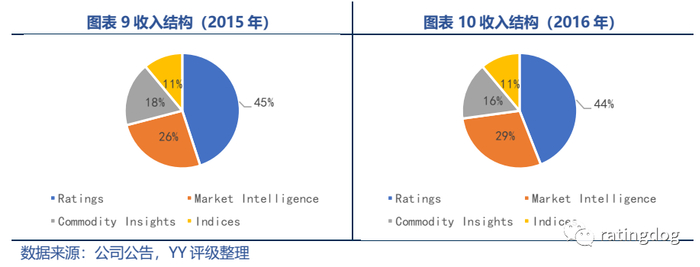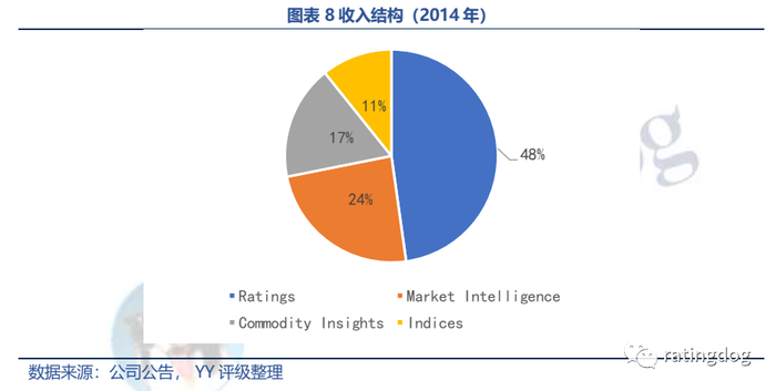 2014年继续拆分整合业务线,将商品资讯下属的建筑业务剥离(剔除该部分的影响后,该业务收入实际增长6%),同时指数业务在并购道琼斯指数公司后进一步增长,占比从9%上升到11%。