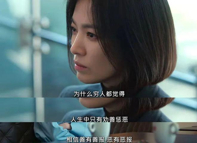 而随时一身黑衣的主演宋慧乔也用冷冽的眼神,告别了过去的甜美形象,制造出无处不在的绝望死亡气息。剧中虚荣拜金的空姐、恶毒且自洽的妍珍等反派角色颇为立体,“全身都恰到好处,好像翻开了GQ杂志1月号第17页的感觉”“NICE的狗崽子”男二河道英(郑日成),更是大热出圈。结构上以双线交织推动剧情节奏,第一季更像是“复仇预告”,第二季正式复仇,霸凌五人组都获得不同惩罚,让观众获得足够的“爽感”。