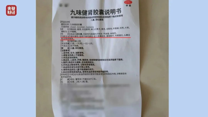 记者支付了1580元,购买了一个疗程两盒的九味健肾胶囊,记者发现这是一款正规药品,有着明确的主治功能,温补肾阳。说明书上并没有任何治疗三高、糖尿病等疾病功效的说明,看来药品的疗效被信口开河、肆意杜撰。如果按照销售人员的说法,老年人用机器中宣传的药品代替日常用药,可能造成严重后果。