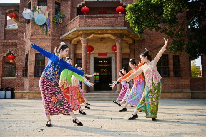 活动期间,梧林传统村落里每天都会上演娘惹风情舞蹈及旗袍舞蹈,游客可以乘坐花车游村,或者逛特色市集,沉浸式地感受南洋风情。在百年侨村,每位来客都可以全方位体验小娘惹的生活日常。换上娘惹服,学做娘惹糕点、娘惹粽子,珠绣胡姬花或是新加坡卡通鱼尾狮,在生活与艺术交融中度过“侨村的一天”。