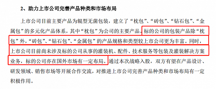 从收购目的来看,新巨丰重大资产购买预案公告中也证实了收购纷美包装就是弥补自身的业务短板的事实。