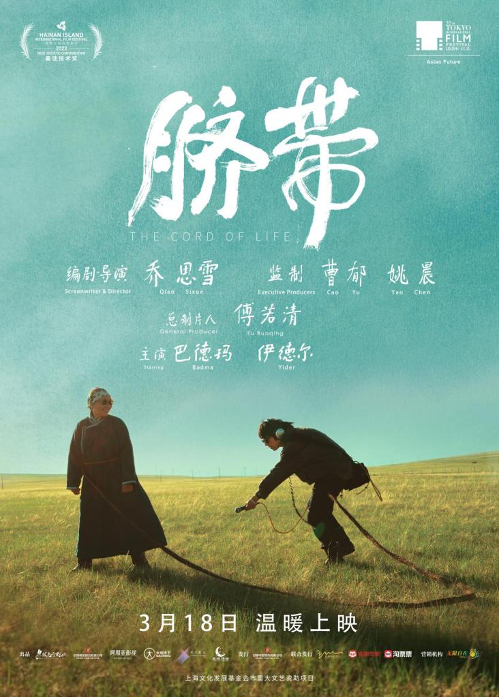 由曹郁、姚晨监制,青年导演乔思雪编剧执导,金鸡奖最佳女主角巴德玛、游牧电子音乐人伊德尔领衔主演的电影《脐带》将于3月18日全国公映。