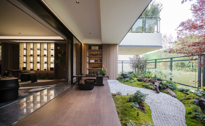 “垂直森林”住区的园林非常重要,保利·和光尘樾以“山水渗透,资源借景”设计理念,将“一环、两轴、五园”的生态小区园林,融合长沙山水文脉及地块周边自然风貌,打造出一个沉浸式、多维立体的高端立体生态住区,将人与自然最大程度的相融共生。