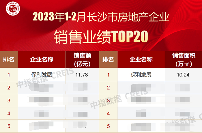 作为与城市共发展的 “城市运营商”,保利发展在长沙入湘25年来一直站在城市人居升级发展角度思考问题。2023年3月10日,专业数据机构中指研究院发布《2023年1-2月长沙房地产企业销售业绩榜》保利发展以11.78亿元、10.24万平方米位居金额榜和面积榜榜首。
