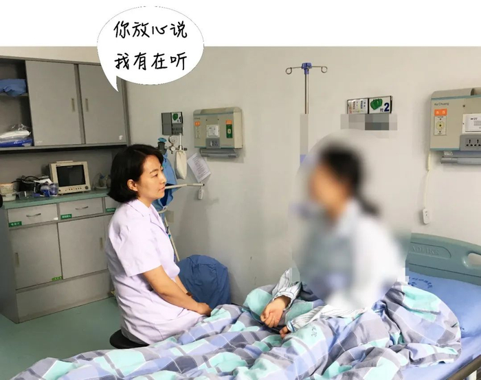 一开始于丹也是“蒙查查”,那就先从“扫楼”做起,每天一大早跟着医生查房,医生问病情,于丹就默默观察患者的言行、情绪,记在“小本本”上,觉得有不对劲的,等查完房再折回来,听她们的心事,陪她们聊天。