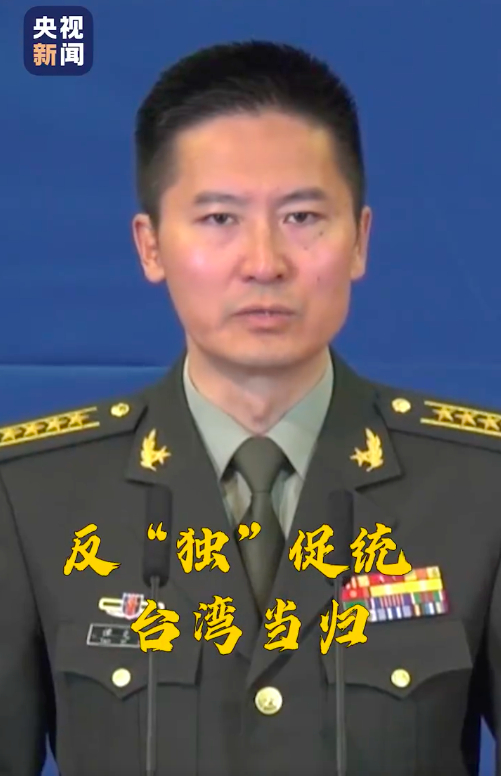 反“独”促统,台湾当归。对于民进党当局任何分裂祖国的行径,对于外部势力任何干涉挑衅,中国人民解放军严阵以待,坚决捍卫国家主权和领土完整。