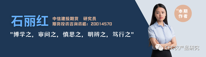 本订阅号(微信号:CFC农产品研究)为中信建投期货有限公司(下称“中信建投”)研究发展部下设的农产品团队依法设立、独立运营的官方订阅号。本订阅号所载内容仅面向《证券期货投资者适当性管理办法》规定可参与期货交易的投资者参考。中信建投不因任何订阅或接收本订阅号内容的行为而将订阅人视为中信建投的客户。
