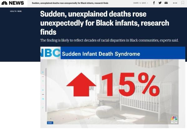据CDC数据,平均每年约有3400名美国婴儿突然意外死亡。在数据收集中,SIDS和意外窒息或勒死事件都属于婴儿意外猝死。研究人员从按种族和民族划分的SUID率数据中发现,美国黑人婴儿不明原因死亡的增加,而其他种族群体则没有。这项研究的作者、CDC围产期和婴儿健康团队的高级流行病学家莎琳·帕克斯·布朗(Sharyn Parks Brown)说,这一发现对我们来说“绝对出乎意料”。