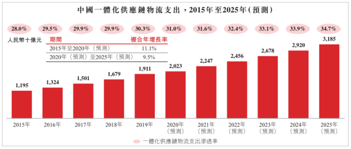 不过,从长期角度来看,京东物流一体化供应链服务仍有广阔的前景。根据灼识咨询数据,2020年,中国一体化供应链物流服务行业市场规模达2万亿元,预计到2025年这一数字将进一步增至3.2万亿元,年复合增速为9.5%。
