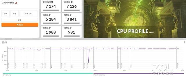 3DMark CPU Profile通过物理特效渲染来评估CPU的单线程和多线程性能,在其测试标准下,酷睿i5-13500H单线程得分981,2线程得分1988,4线程得分3841,8线程得分5284,16线程得分7126,最大线程得分7174,总体性能实力不错。