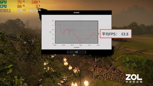 还是1080P分辨率,最高画质,并且将部队规模开至最大,实测平均帧数为63.8fps,运行流畅。