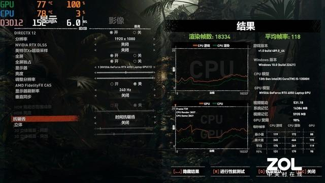 得益于全新的Ada Lovelace架构,RTX 40笔记本电脑GPU在性能层面有了巨大提升,尤其是DLSS3的支持,RTX 4050这样的入门级独显也能很好地运行光追游戏了。