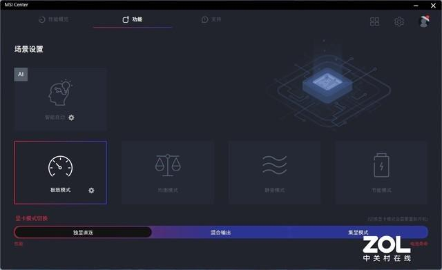外观了解之后,接下来我们看看微星星影15的整体配置和性能表现。在测试开始之前,我们通过MSI Center开启了极致模式,切换到独显直连状态。