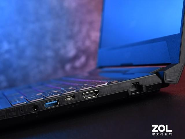 星影15的接口主要分布在机身左右两侧,右侧配有3.5mm音频插孔,1个Type-A USB 3.2 Gen1,1个 Type-C USB 3.2 Gen1(DP),1个支持8K@60Hz和4K@120Hz输出的HDMI接口,以及标准的RJ-45网口。