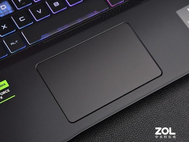 星影15也拥有宽大舒适的腕托,其对腕部有着非常良好的承托,长时间玩游戏也不会感到腕部疲劳。触控板虽然面积不算大,但是整体操控精准,表面触感光滑,左右键有效按压区域大,没有明显的按键死区,这些细节把控使得星影15拥有非常好的操控交互体验。
