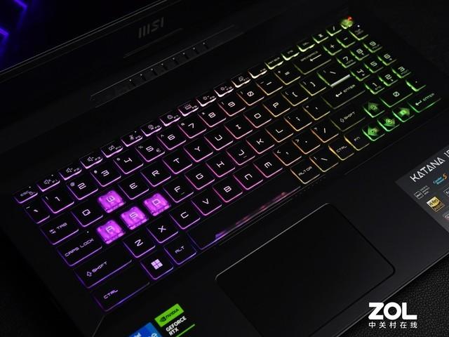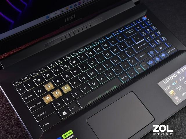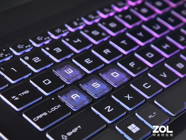 虽然定位主流,但是星影15在灯效设计上也没有妥协。键盘区域没有使用单一背光,而是采用了四区RGB炫彩键盘设计。WASD键采用高透光键帽设计,彰显游戏基因。