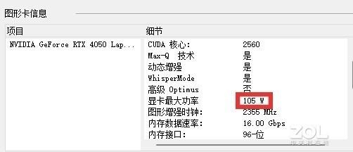 其实RTX 40系列笔记本电脑GPU有一个非常好的特性就是:性能大幅提升但功耗保持不变。也就是说在相同功耗下,RTX 40的性能就可以远超RTX 30同级显卡,因此完全可以不必通过堆功耗的手段来维持性能输出。对于RTX 4050而言,105W功耗已经足以发挥出相当不错的性能水准,这是RTX 40系显卡最为显著的进步之一。