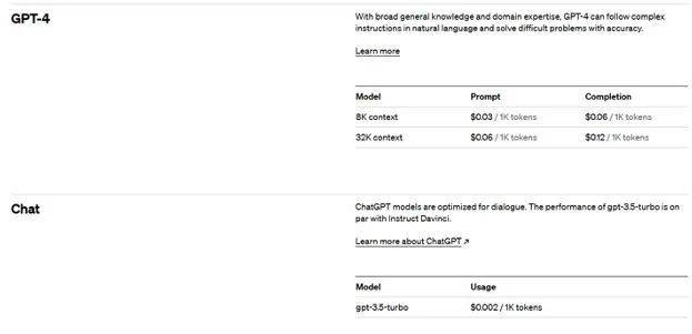 实际上,这些AI助手的运行成本并不低。按照Open AI公布的GPT-4的API费用表,为每输入1000个字符(约合750个单词),价格为0.03美元,每生成1000个字符,价格为0.06美元。也就是说用户每问一次,成本差不多就是1毛钱。