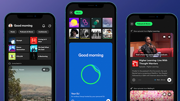 虽然Spotify新版本尚正式上线,但从发布会介绍来看,新版本将平台所有内容都进行了“TikTok化”。主页的内容推荐分成音乐、播客和有声书三个选项,每种类型的内容都将以视频信息流的形式呈现。