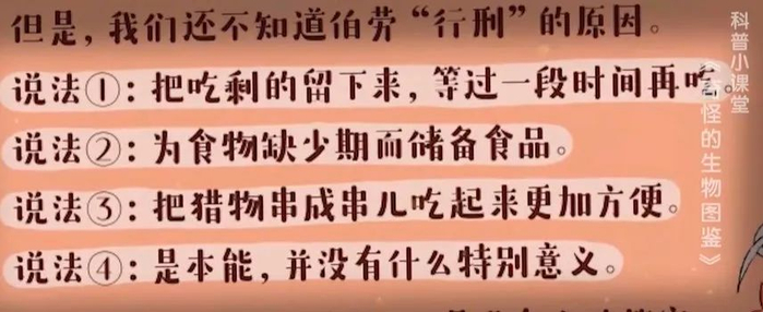 还有解释认为,伯劳雄鸟的“挂尸”行为是为了宣示自己的领域,防止其它雄鸟侵犯;或展示雄性魅力,吸引更多雌性;或者是给雌性送礼,让自己获得更多交配的机会。