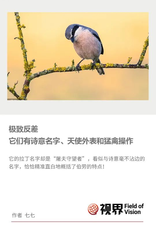 伯劳中文名字让它充满文艺色彩,而它的拉丁名字是“屠夫守望者”,在德国它们被叫做“绞刑天使”,这些看似与凄美忧郁毫不沾边的名字,恰恰精准直白地概括了伯劳的特点!
