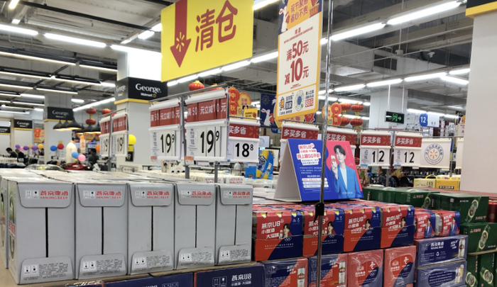 3月17日,界面新闻在北京西城沃尔玛店酒水消费区时发现,白酒展示区的货架逐渐被啤酒替代。其中,仍保留在展示区的白酒产品主要以国窖1573、第八代普五等中高端产品为主。