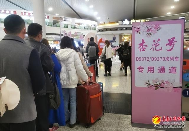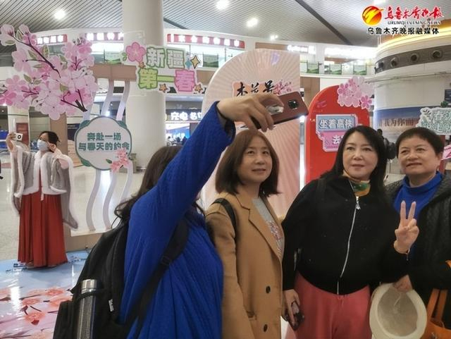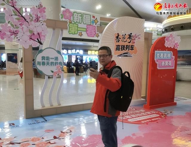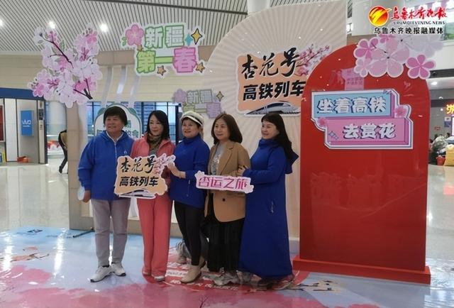 17日8时许,记者在乌鲁木齐站看到,该站在进站口以及实名制验证口均设立了“杏花号”列车旅客乘车专用通道,并在候车大厅设立了旅客拍照打卡点,许多游客正在这里打卡拍照。