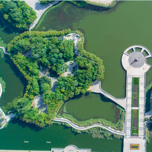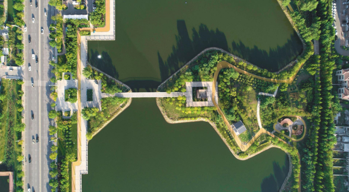 “引湿地入园”,就是在原有湿地基础上修建公园。具体的做法是按照河岸、浅水区、深水区的湿地类型,利用扩挖原有河道、坑塘或湿地,抬高河边和河岸地势,从而形成浅水区,然后在浅水区保留50至100厘米的自然生长芦苇,河岸栽种白蜡、国槐、垂柳、柽柳等耐盐碱绿化树种。有深水区的湿地,打造出层次错落的水系景观;无深水区的湿地则可收集雨水,用于绿化浇灌。