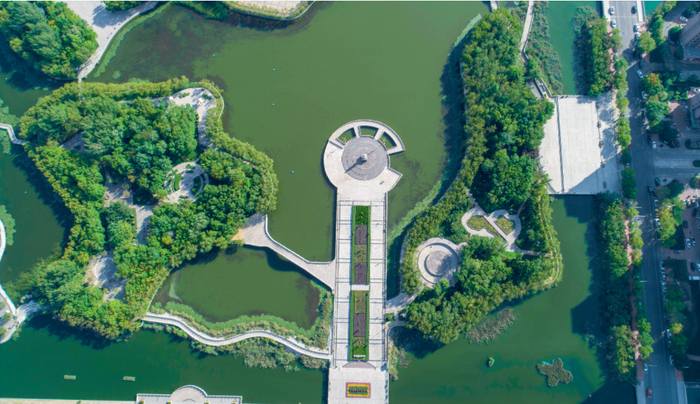 除芦苇外,湿地型公园中的白蜡、国槐、柽柳等本地树种也随处可见,因地制宜的树种环绕着湿地和水系,再加上点缀的景观小品,呈现出独特的湿地风貌。