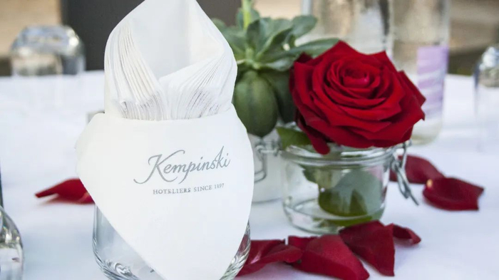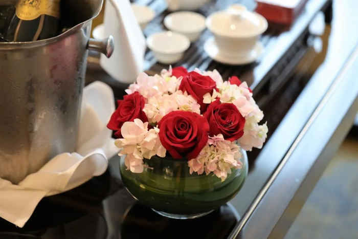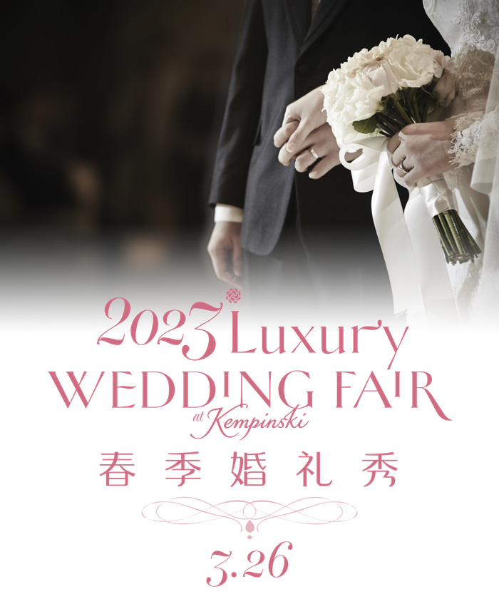 3月26日下午14:00,凯宾斯基携手图柏婚礼于四楼大中华宴会厅上演一场唯美春季婚礼秀。本届婚礼秀现场以粉金为主色系,营造浪漫且优雅的氛围,法式水晶吊灯搭配高级布幔,仿佛置身于梦幻花园中,邂逅属于彼此的浪漫。