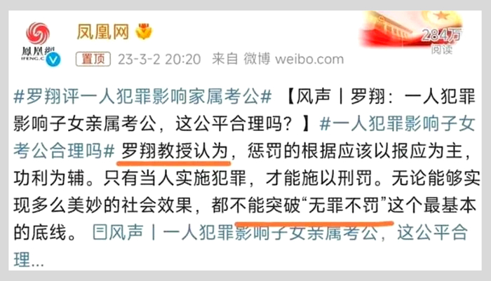 3月2日,中国政法大学教授罗翔针对对罪犯子女的考公限制提出了自己的意见。他认为这种做法是不合理的,因为它违背了法治精神,同时也会导致不公平的结果。