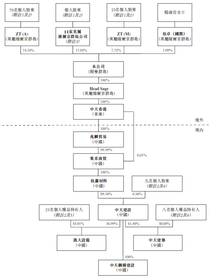 招股书显示,中天建设在上市前的股权架构中,其控股股东为ZT(A),持有74.16%的股份。