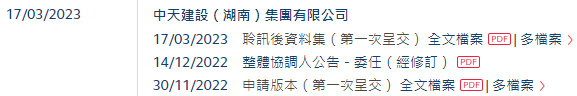 2023年3月17日,来自湖南株洲荷塘区的中天建设(湖南)集团有限公司Zhongtian Construction (Hunan) Group Limited (以下简称"中天建设") 在港交所披露其通过聆讯后的招股书,或很快在香港主板挂牌上市。其于2020年5月25日、2020年12月24日、2021年7月9日、2022年3月1日、2022年11月30日先后五次递表。